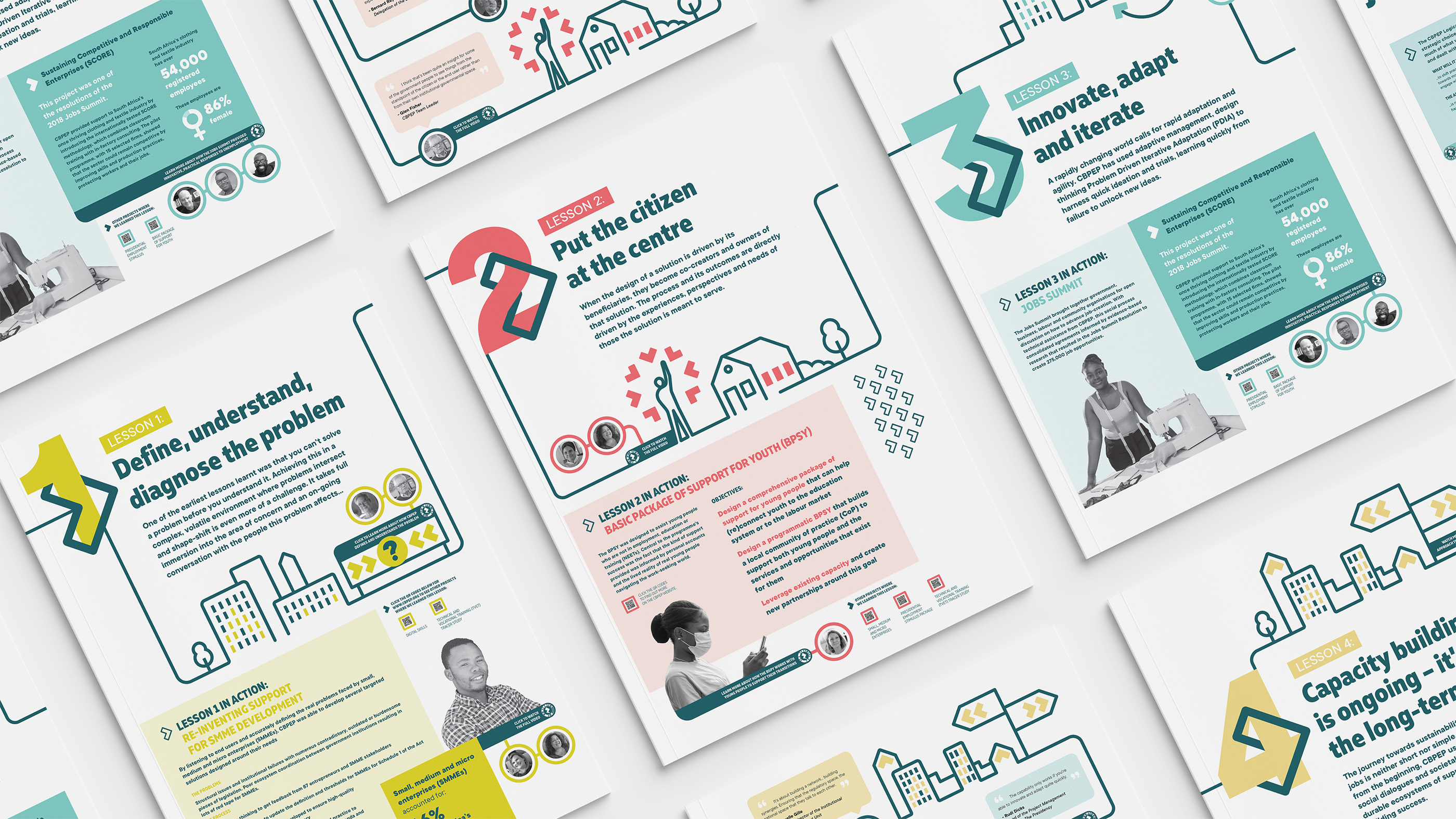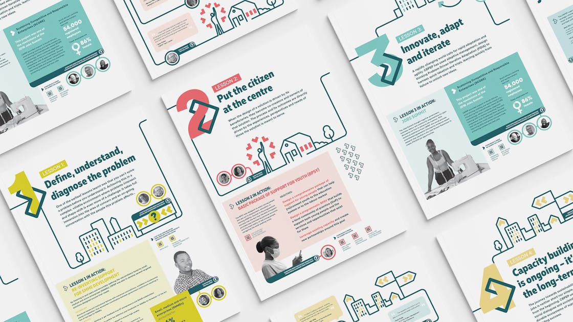 We designed a series of posters with augmented reality (AR) features for an immersive, interactive experience. Users could scan visual tags on the posters with an app to view animations and video interviews on their phones. Working with the CBPEP team, we identified key programme lessons, then developed written and video content for each lesson to create a layered multimedia journey reflecting the programme's approach.